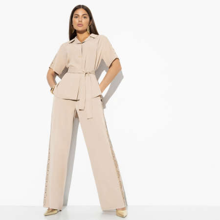 Брючный костюм «Престижная номинация (беж, 2 в 1, с поясом)» легко сочетается с различными элементами вашего гардероба. Носите его с блузками, топами или рубашками, создавая разнообразные и модные образы. Этот костюм подходит как для деловых встреч, так и для вечерних мероприятий, подчёркивая вашу индивидуальность и чувство стиля. В нём вы всегда будете выглядеть безупречно.