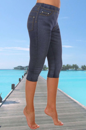 Бриджи облегающие, чуть ниже колена. На передней и задней части принт, имитирующий джинсы