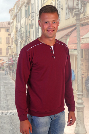 Мужской джемпер из футера с лайкрой двухнитки. Окантованная горловина необычного покроя с подкладкой и декоративными пуговицами, по низу и на рукавах манжеты, несколько расцветок.
