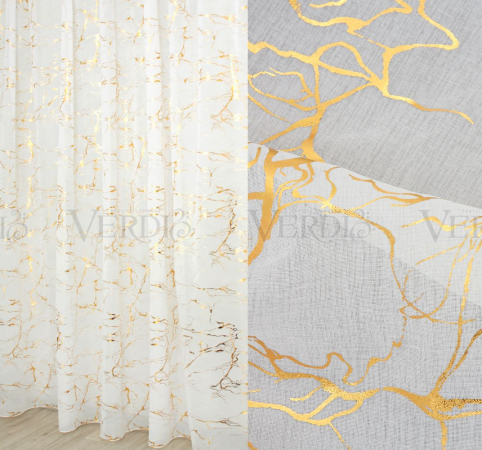 Имитация льна термопечать Веселина (арт. 33/1850TG-1 бел цвет+золото А)