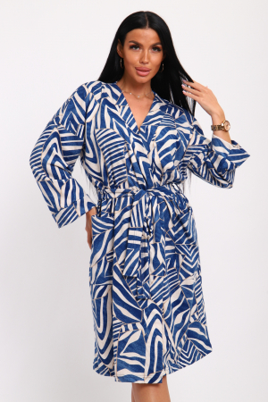 Халат женский запашной с карманами и поясом. Длинный рукав на спущенном плече.