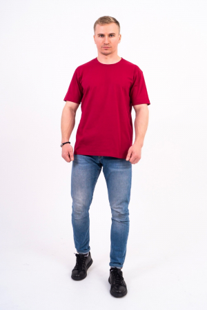 Базовая мужская футболка из кулирки. Хлопковая однотонная мужская футболка классического прямого кроя. Модель отлично подходит разным типам фигур, хорошо сидит и не стесняет движений. Дышащий материал приятен на ощупь и отличается особым комфортом. Базовая футболка универсальна, прекрасно комбинируется с разными предметами мужского гардероба. Ее можно сочетать с джинсами, брюками, шортами. В этой футболке вы в любой ситуации будете выглядеть современно. Горловина обработана рибаной. Росток спинки обработан бейкой из кулирки. Рукав втачной, короткий.