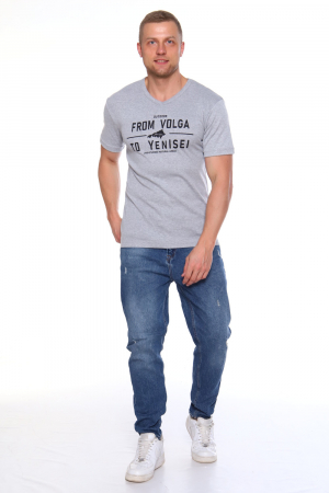 Футболка прямого силуэта. Горловина декорирована треугольным вырезом со вставкой, украшена печатью.