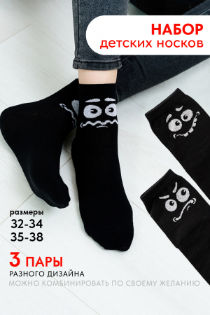 -Детские носки с забавными рожицами на паголенке. Комплект 3 пары носков, на каждом свое изображение.