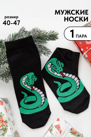 Оригинальные мужские новогодние носки. В комплекте 1 пара. На основной части носка изображение символа будущего года Змеи.