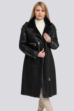 Дубленка прямого кроя, застежка на молнии. Спущенный рукав, по низу декоративные молнии. На
