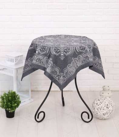 Скатерть квадратная жаккардовая с ажуром "Орнамент"-графит
