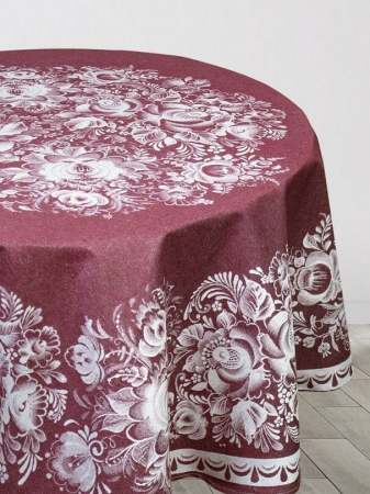 Скатерть круглая жаккардовая с ажуром "Цветы"-бордо