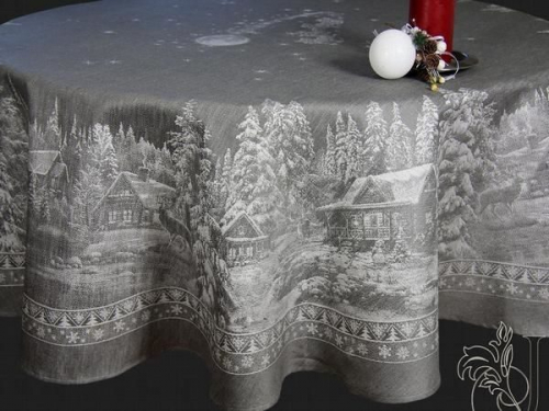 Скатерть круглая жаккардовая "Рождество"-сер.