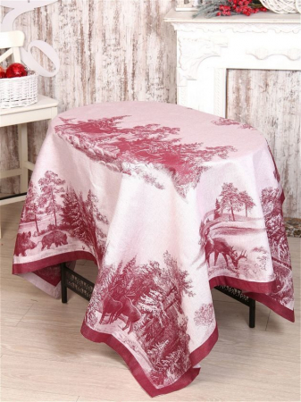 Скатерть прямоугольная жаккардовая с вытачным углом "Зима в лесу"-бордо