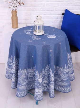 Скатерть круглая жаккардовая "Рождество"-син.