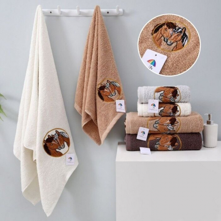Махровое полотенце "Пара лошадей"- КАПУЧИНО 35*75 см. хлопок 100% (арт. 1757540476)