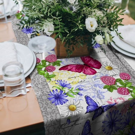 Дорожка-элемент декора, позволяющий сделать сервировку стола более оригинальной и интересной, наполнит свежестью и украсит Ваш интерьер. Дорожки очень популярны в современном мире, поэтому мы предлагаем Вам широкий ассортимент расцветок и дизайнов. Изделия выполнены из плотного материала-диагонали, плотностью 240 г/м2. Дорожки можно расположить вдоль стола или поперек, используя одну или сразу несколько, комбинировать со скатертями. Дорожки не только сморятся стильно и нарядно, но и защищают стол от загрязнений и царапин, сохраняют столешницу от перегрева. Дорожки имеют приемлемую стоимость и будут по карману любой хозяйке. Сервировка стола с дорожкой - стильное решение для Вашего дома!