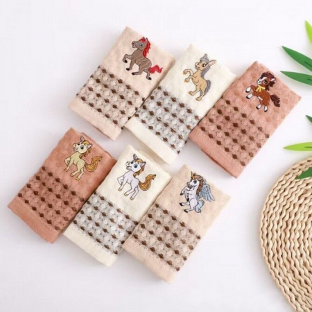 Полотенце кухонное крупная вафелька с вышивкой "Игривые лошадки" 25*50 см. хлопок 100% (арт. 01609179928)