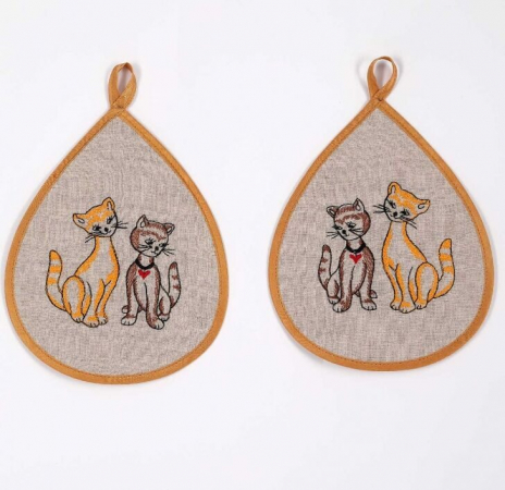 Комплект прихваток с вышивкой "Кошки" лен 100% (арт. 01335615997)