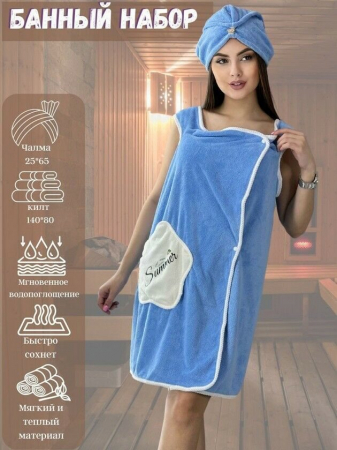 Комплект женский для бани и сауны "Красотка"-ГОЛУБОЙ микрофибра 2 пр. (парэо + чалма) (арт. 0496950462)