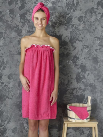 Комплект женский для бани и сауны МАЛИНА махровый 3 пр. (накидка-парэо, чалма, рукавица) хлопок 100% (арт. 1295739085)