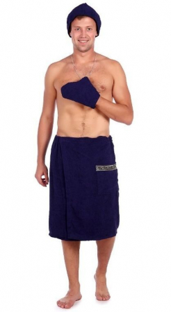 Комплект мужской для бани и сауны СИНИЙ махровый 3 пр. (накидка-парэо, чалма, рукавица) хлопок 100% (арт. 857281301)