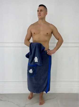 Комплект мужской с вышивкой "КОРОЛЬ БАНИ"-СИНИЙ 2 пр. (килт+полотенце) микрофибра (арт. 0698337817)