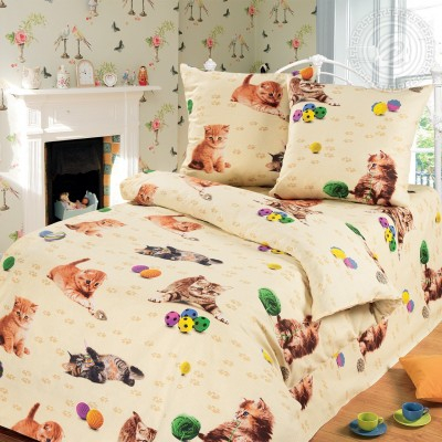 Милые котята не оставят никого равнодушным. Комплект постельного белья «Усатый-полосатый» – множество забавных усатых котов и кошечек, которые непринужденно играют на нежном бежевом фоне. Следы кошачьих лапок говорят об активности животных, их непринужденности и отличном настроении. Клубки, мячики и другие игрушки помогают зверям поддерживать активность и вызывать улыбки на лицах людей. С таким постельным бельем вы никогда не будете грустить.
