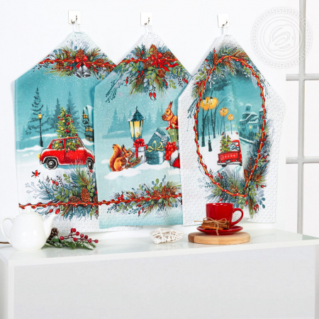 Что такое Новый год? Это вера в чудеса, заветные желания, загаданные под бой курантов и ощущение сказки. Это красавица-ель с яркими шарами и шишками, подарки с бантиками и уютная атмосфера. Украсить новогодний праздник и создать волшебство поможет набор новогодних полотенец «Огонёк» с авторским рисунком. Здесь сказочные картины, пропитанные духом зимнего праздника. Милые белочки и снегири, красные грузовички с подарками и красивые узоры с колокольчиками.