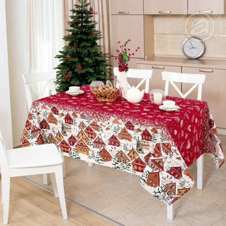 Вы ждете Новый год? Тогда Вам точно понравится новогодняя скатерть с великолепным пейзажем. Здесь изображен маленький городок с зимними улочками из деревянных изб, пушистыми ёлками и снежинками. Этот авторский дизайн окутывает нежностью и ностальгией. Хочется попасть в этот волшебный мир и почувствовать себя героем чудесной сказки.