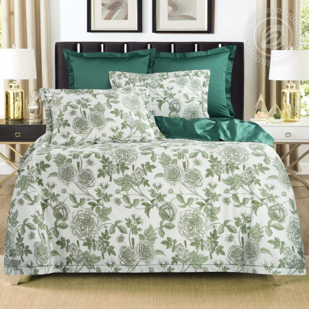 «Октавия» – образ комфорта в облике спальни. Мягкое и шелковистое постельное белье зеленое с цветами подарит ощущение уюта и чудесные сны.