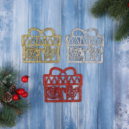 Набор из трёх разноцветных ёлочных подарков с резным узором привнесёт в праздничный декор нотки барочной изящности. Игрушки размером 8x8,5 см выполнены из пластика и отражают стиль новогоднего барокко, создавая эффектный акцент на ёлке.