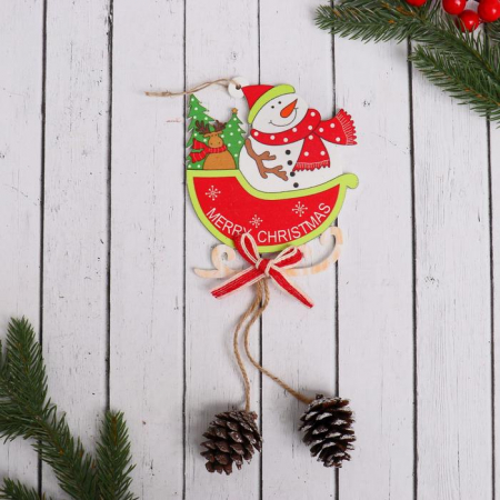 Деревянное украшение с фигуркой снеговика на санях с шишками добавит красочный акцент в новогодний интерьер. Резная отделка и насыщенный красный цвет подчёркивают уникальность изделия в стиле фьюжн, объединяющем традиции и современность.