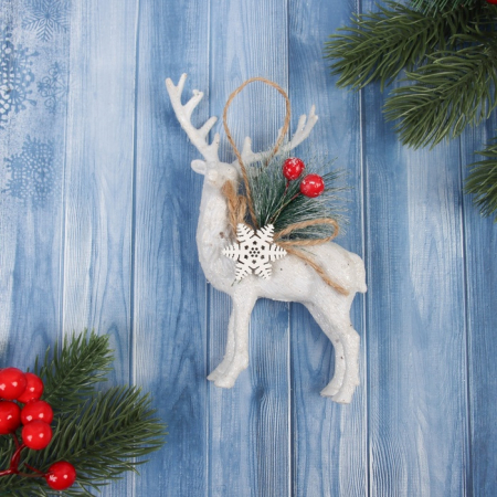 Белая пластиковая фигурка оленя высотой 14 см станет изящным элементом новогоднего декора, объединяя стиль ар-деко с датскими и скандинавскими мотивами. Наполнение придаёт игрушке объём и лёгкость, подчёркивая её утончённость и современный дизайн.