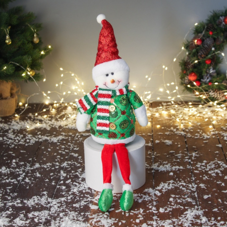 * Объемные части тела — мягконабивные, создающие выразительный образ снеговика с длинными ножками.