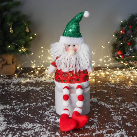 * Объемные части тела — мягконабивные, создающие выразительный образ Деда Мороза с ногами и сияющим костюмом.