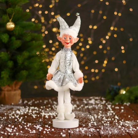 Эта фигура делает дом частью вашей истории о зимнем волшебстве и подарках. Серебристо-белые тона и образ мультяшного персонажа работают вместе, чтобы передать дух Нового года и предпраздничное настроение. Используйте её как самостоятельный акцент или рядом с другими украшениями — она одинаково мягко усиливает атмосферу торжества и семейную доброжелательность.