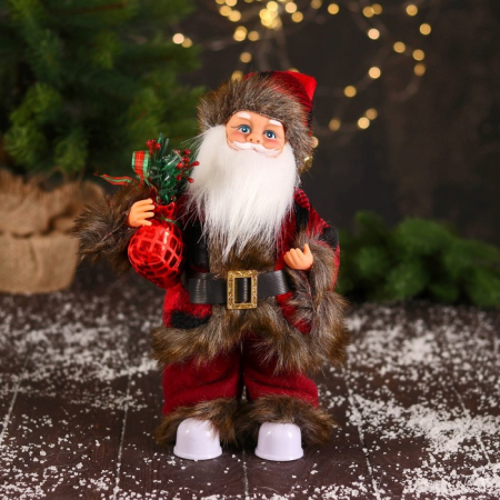 Фигурка Деда Мороза в красной меховой шубке высотой 30 см сочетает элементы новогоднего барокко, скандинавского минимализма и фьюжн-стиля. Подвижные части оживляют образ без звуков и подсветки, создавая атмосферу спокойствия и праздничного уюта.