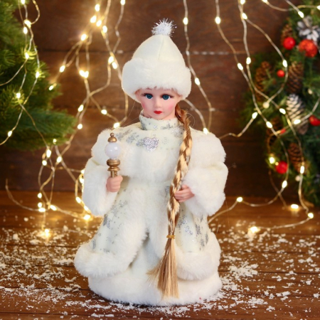 Движущаяся Снегурочка становится центром внимания в праздничном интерьере, наполняя комнату мягкой энергией и напоминая о традициях новогодних праздников. Её дизайн сочетает в себе элементы ар-деко и классики с современным взглядом на декор, позволяя вписать её в разнообразные стилистические решения. Лёгкое движение фигурки словно оживляет зимнюю сказку, создавая настроение ожидания и радости.