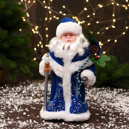 Фигурка Деда Мороза высотой 27 см в синей шубе с посохом — стильное украшение для новогоднего интерьера, сочетающее в себе элементы советской традиции и современного фьюжн-дизайна. Отсутствие источника питания и звуковых эффектов делает эту модель максимально простой и универсальной, что позволяет использовать её в самых разных праздничных композициях без дополнительных технических требований. Благодаря компактному размеру и продуманному образу, фигурка легко впишется как в классический, так и в современный декор, создавая атмосферу тепла и уюта.