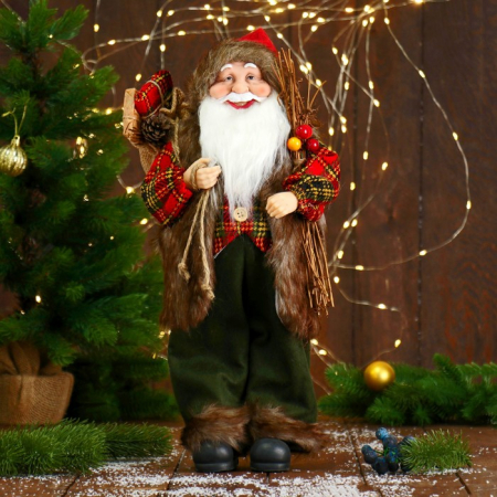 Прикоснитесь к праздничной атмосфере с необычной фигуркой высотой 45 см. «Дед Мороз в пушистой жилетке» станет замечательным дополнением вашего новогоднего декора.