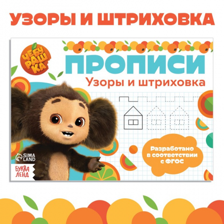 Внутри вы найдёте интересные задания, направленные на тренировку усидчивости и глазомера. Выполняя их, малыш научится обводить узоры и подготовит руку к письму. Также в книге есть забавные иллюстрации с любимыми героями фильма «Чебурашка».