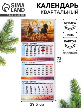 Календарь настенный квартальный 2026 «Тройка лошадей» (арт. 10872025)