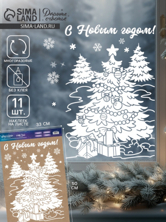 Наклейки на окна многоразовые «Новогодние подарки», 33?50 см (арт. 6940007)