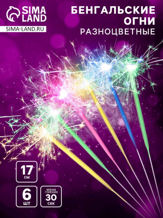 Бенгальские огни разноцветные «Спектр», 6 шт., 17 см, горение 30 сек. (арт. 4483413)