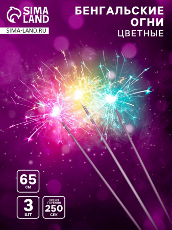 Бенгальские огни «Цветопламенные», 3 шт., 65 см, горение 250 сек. (арт. 4462184)