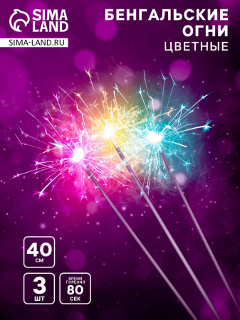 Бенгальские огни «Цветопламенные», 3 шт., 40 см, горение 80 сек. (арт. 4462183)