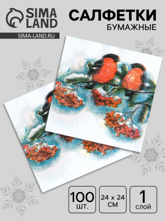 Салфетки новогодние бумажные «Снегири», 24?24 см, 100 шт. (арт. 5278487)