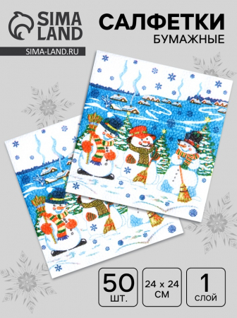 Салфетки новогодние бумажные Гармония цвета «Снеговички», 24?24 см, 50 шт. (арт. 4580261)