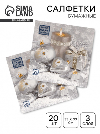 Салфетки новогодние бумажные Home Collection «Праздничный натюрморт, серебро», 3 слоя, 33?33 см, 20 шт. (арт. 10693268)