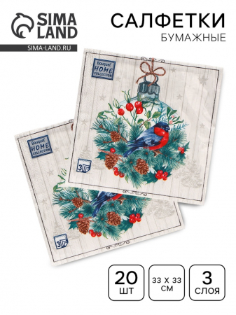 Салфетки новогодние бумажные Home Collection «Сказочное украшение», 3 слоя, 33?33 см, 20 шт. (арт. 9896684)