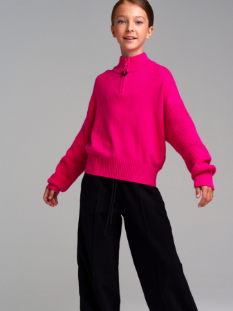 Свитер из вязаного трикотажа. Высокое содержание вискозы 50%. Вискоза отличается высокой гигроскопичностью - она впитывает влагу и отлично сохраняет тепло. Высокий воротник-стойка. Плетение в рубчик на рукавах и по низу изделия.