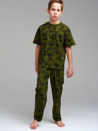 Пижама: футболка, брюки из качественного и приятного на ощупь трикотажа джерси. 100% хлопок. Футболка oversize. Брюки comfort fit с эластичным поясом со шнурком. Карманы в боковых швах.
