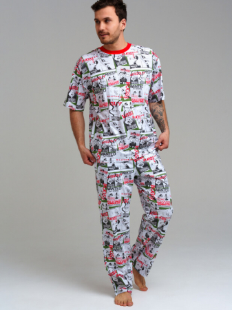 Пижама из качественного и приятного на ощупь трикотажа джерси. 100% хлопок. Футболка силуэта oversize. Брюки comfort fit - свободный крой. Эластичный пояс со шнурком. Карманы в боковых швах.